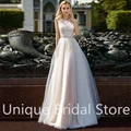 Princesse A-Line O-Neck Wedding Dress Sleeveless Lace Appliques Back Button Sweep Train 2021 Bride Gowns Vestido De Noiva
