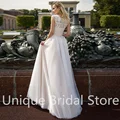Best savings for Princesse A-Line O-Neck Wedding Dress Sleeveless Lace Appliques Back Button Sweep Train 2021 Bride Gowns Vestido De Noiva